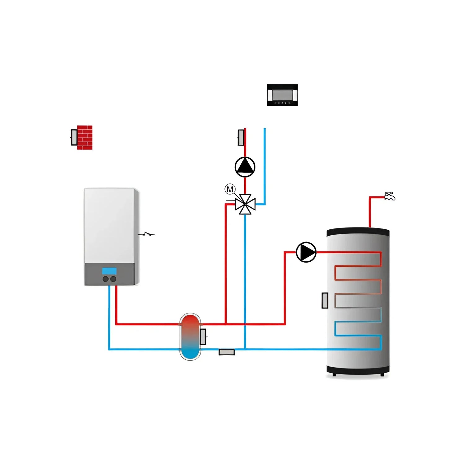 Ta regulator ogrevalnega kroga zagotavlja stalno, vremensko odvisno regulacijo temperature dovoda z uporabo priloženega zunanjega temperaturnega senzorja. Prav tako krmili motor mešalnika, da se zagotovi povečanje povratnega pretoka pri uporabi štiripotnega mešalnika. To poveča učinkovitost ogrevanja in vam omogoča optimalno izrabo energije.