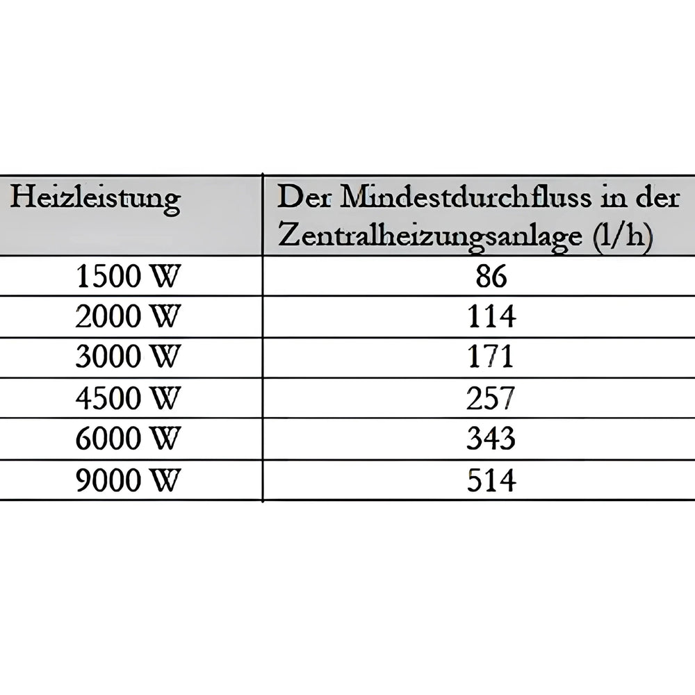 • Minimumsflow: 9,0 kW/514 l/t