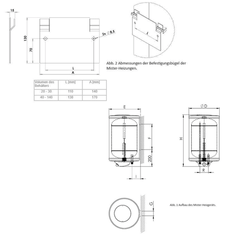 Elektro Hängespeicher 20 - 140 Liter Brauchwasserspeicher