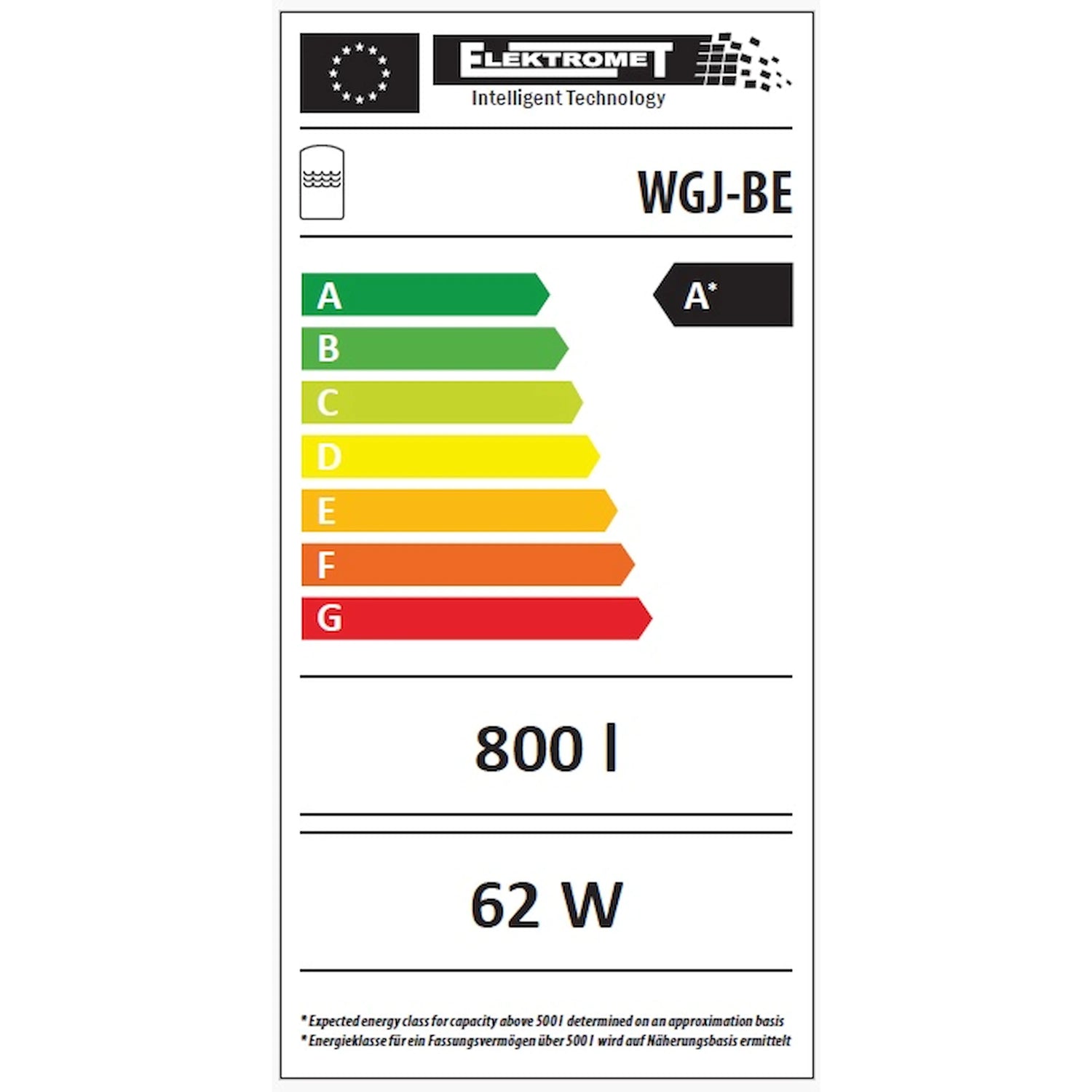 WGJ-BE 800: Όγκος αποθήκευσης περίπου 710 l, απώλειες σε ακινησία περίπου 62 W, βάρος ~143 kg. WGJ-BE 1000: Όγκος αποθήκευσης περίπου 830 l, απώλειες σε ακινησία περίπου 71 W, βάρος ~160 kg. Μέγιστη πίεση λειτουργίας: 0,3 MPa. Μέγιστη θερμοκρασία λειτουργίας: 80 °C.