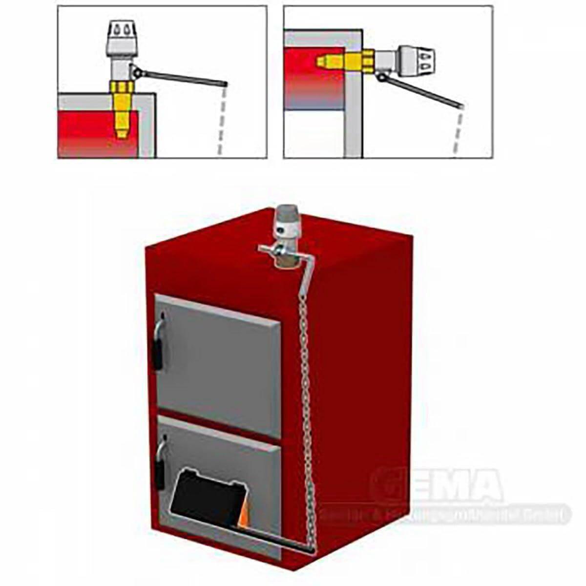 Temperaturo v generatorju toplote meri vgrajen termostat. Termostat je z loputo dovodnega zraka povezan prek vzvoda in verige. Glede na temperaturo dovoda kotla se dovod zraka regulira z odpiranjem ali zapiranjem lopute dovodnega zraka. Za temperaturno odvisno nastavitev lopute dovodnega zraka pri kotlih na trda goriva in kotlih s spremenljivim zgorevanjem.
