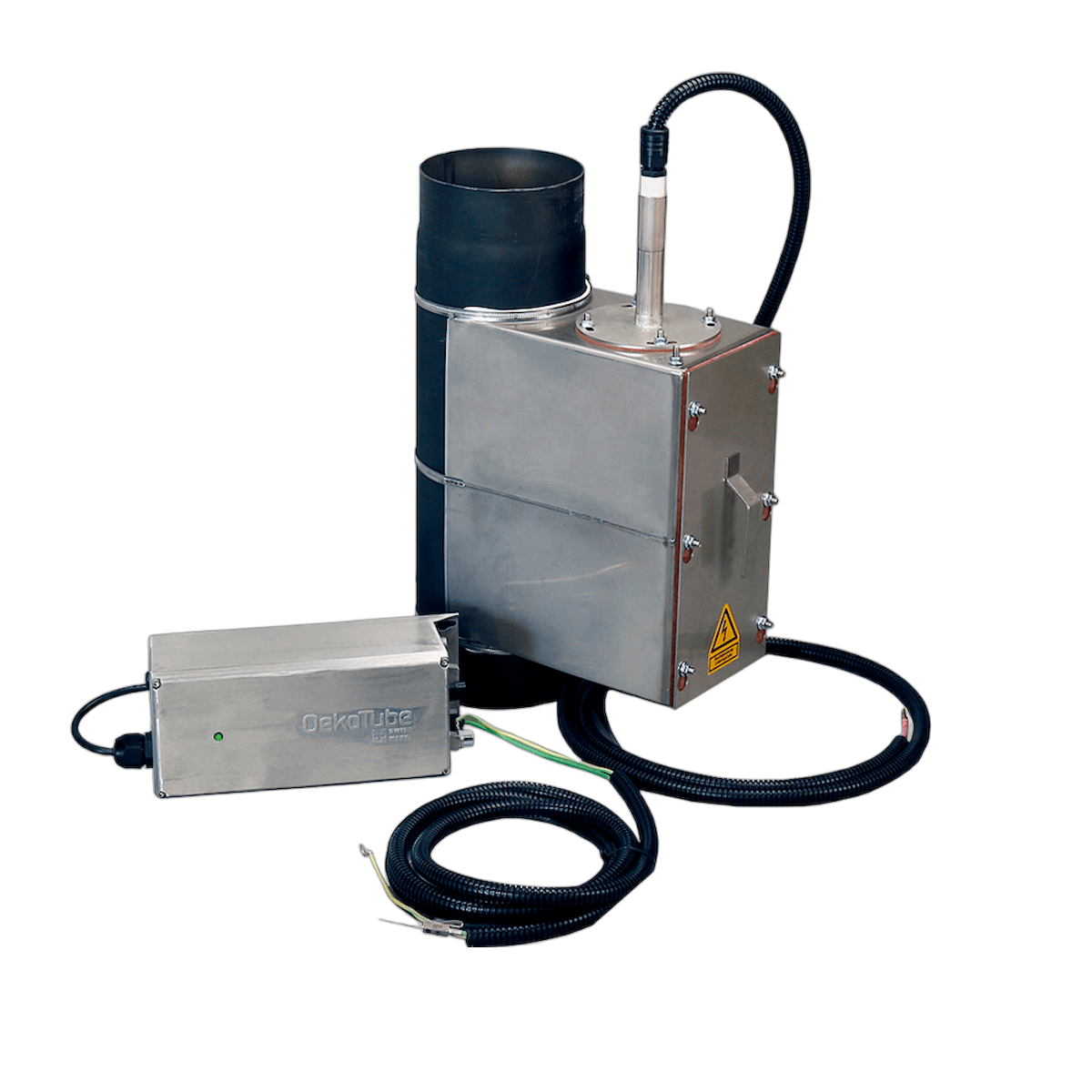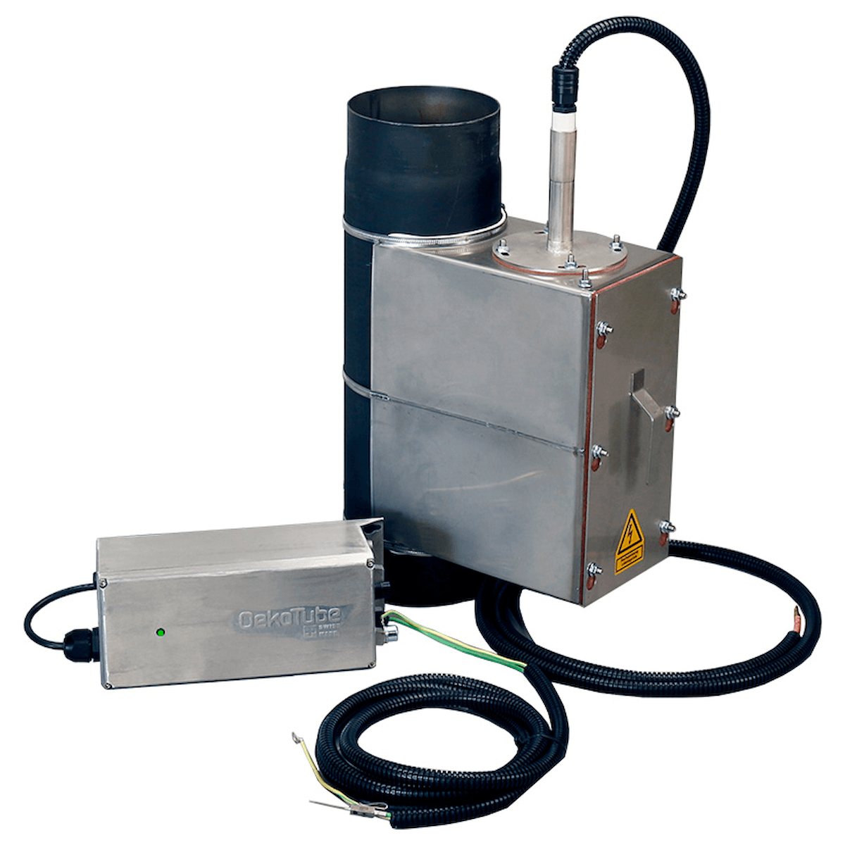 OekoTube-Inside je elektrostatični ločevalnik delcev, posebej zasnovan za kotle na drva do 100 kW. Enostavno se namesti v kotlovnici med kotlom in dimniško odprtino ter zagotavlja opazno zmanjšanje emisij trdnih delcev.
